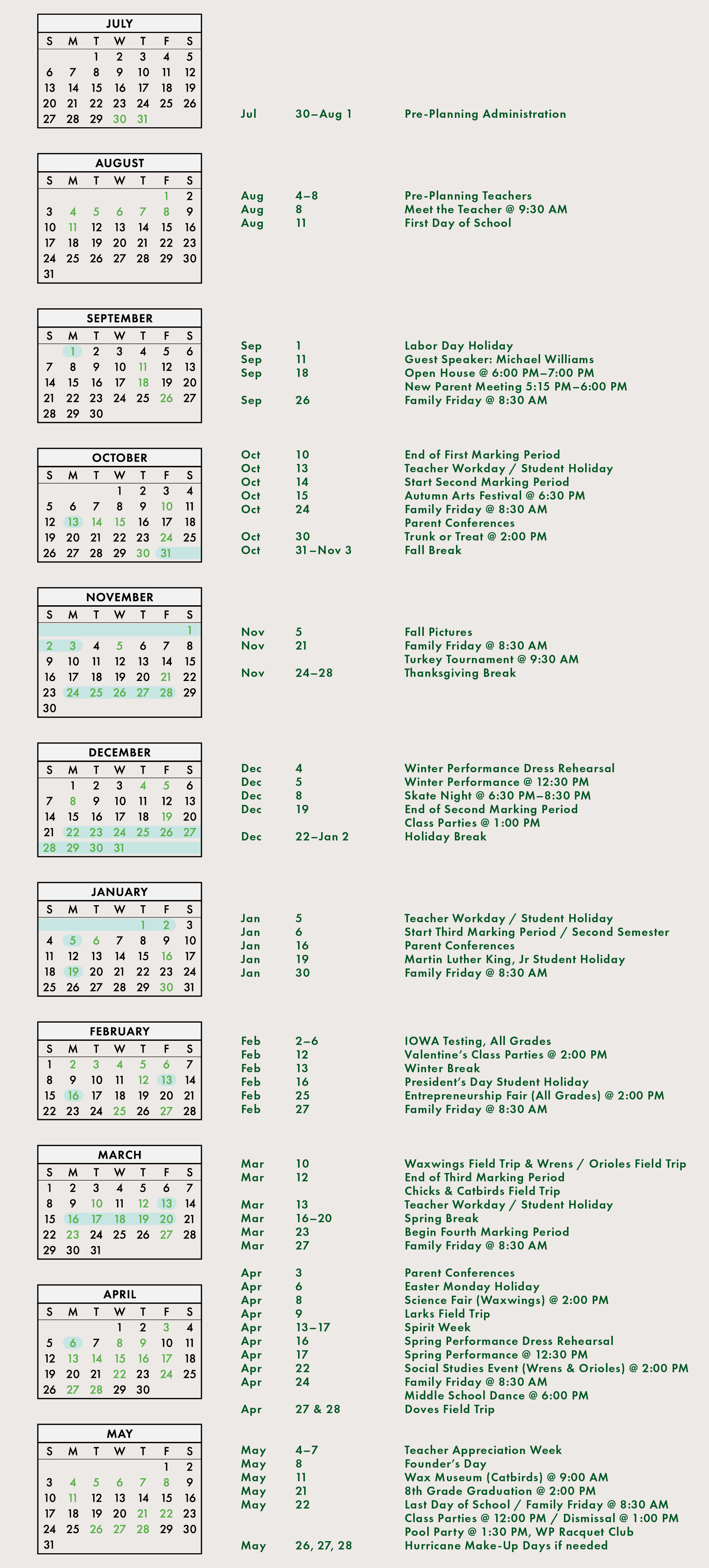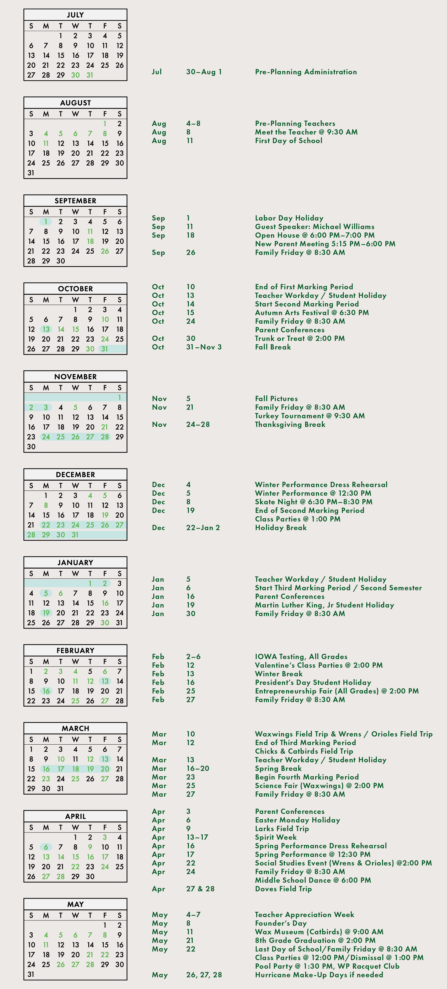 Park School Calendar
